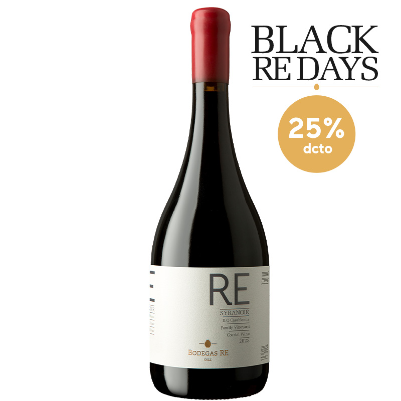 RE Syranoir es un vino conceptual de Bodegas RE, que implica un RE crear,mediante el uso de procesos artesanales de vinificación en ánforas gigantes y tinajas de arcilla, con las técnicas y conocimientos actuales. Nace entonces un vino único, para REunir a dos cepas bajo una misma REcreación: Syrah, REscata a la bella, elegante y seductora bailarina de Casablanca y el Pinot Noir, REscata el equilibrio y suavidad del amanecer que termina en boca de forma sedosa.